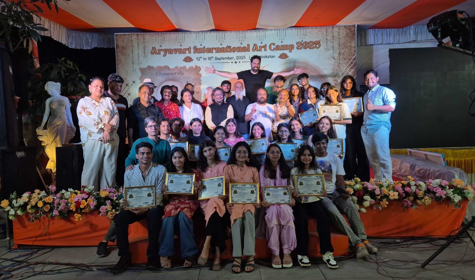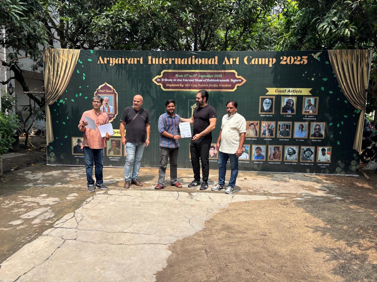 The International Art Camp organised by Aryavart Art Gallery at Santiniketan was held from 12th to 18th September 2024, bringing together internationally acclaimed artists, master mentors, scholars, and emerging talents in a culturally immersive environment. Rooted in the philosophical and artistic legacy of Rabindranath Tagore, the camp fostered meaningful dialogue between tradition and contemporary artistic practice, visual arts and performance, pedagogy and professional growth.